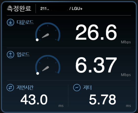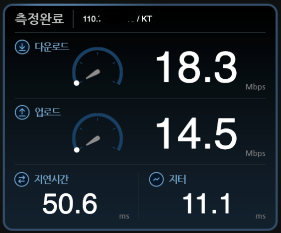 수치적으로는 꽤 차이가 나는데 인터넷 사용하는데 큰 차이를 못 느꼈습니다. 꽤 안정적이기도 하구요.